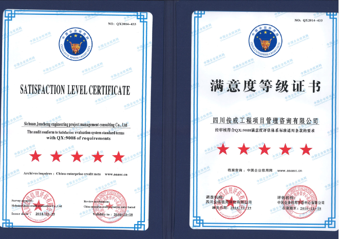 俊成建昱工程集團(tuán)有限公司始建于二零零九年二月,中凱俊成建設(shè)咨詢有限公司為旗下子公司,公司分別位于四川省成都市成華區(qū)、德陽(yáng)市凱州新城,公司注冊(cè)資本5000萬(wàn)元人民幣。中凱俊成通過了ISO9001質(zhì)量管理體系、ISO14001環(huán)境管理體系、ISO45001職業(yè)健康安全管理體系認(rèn)證。   公司目前具有工程監(jiān)理綜合資質(zhì),工程造價(jià)咨詢甲級(jí)資質(zhì),工程招標(biāo)代理甲級(jí)資質(zhì),冶金行業(yè)(冶金礦山工程) 甲級(jí)設(shè)計(jì).....[詳情]
